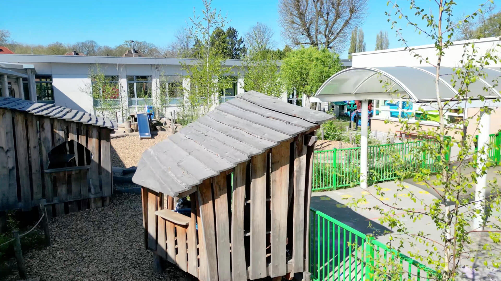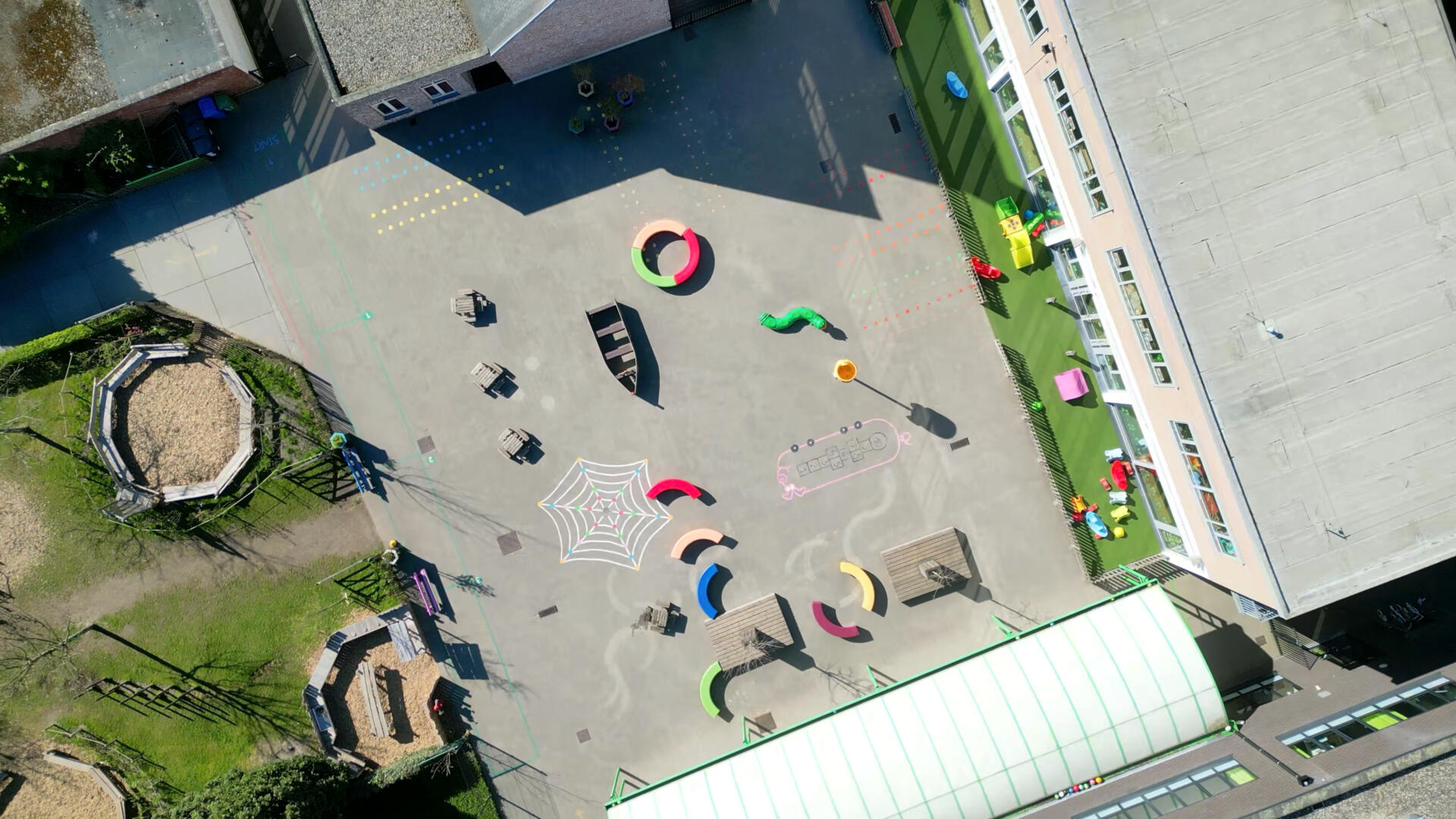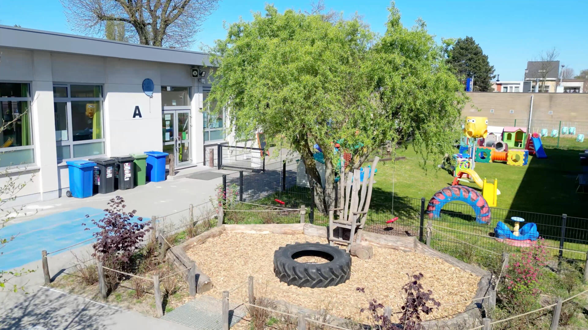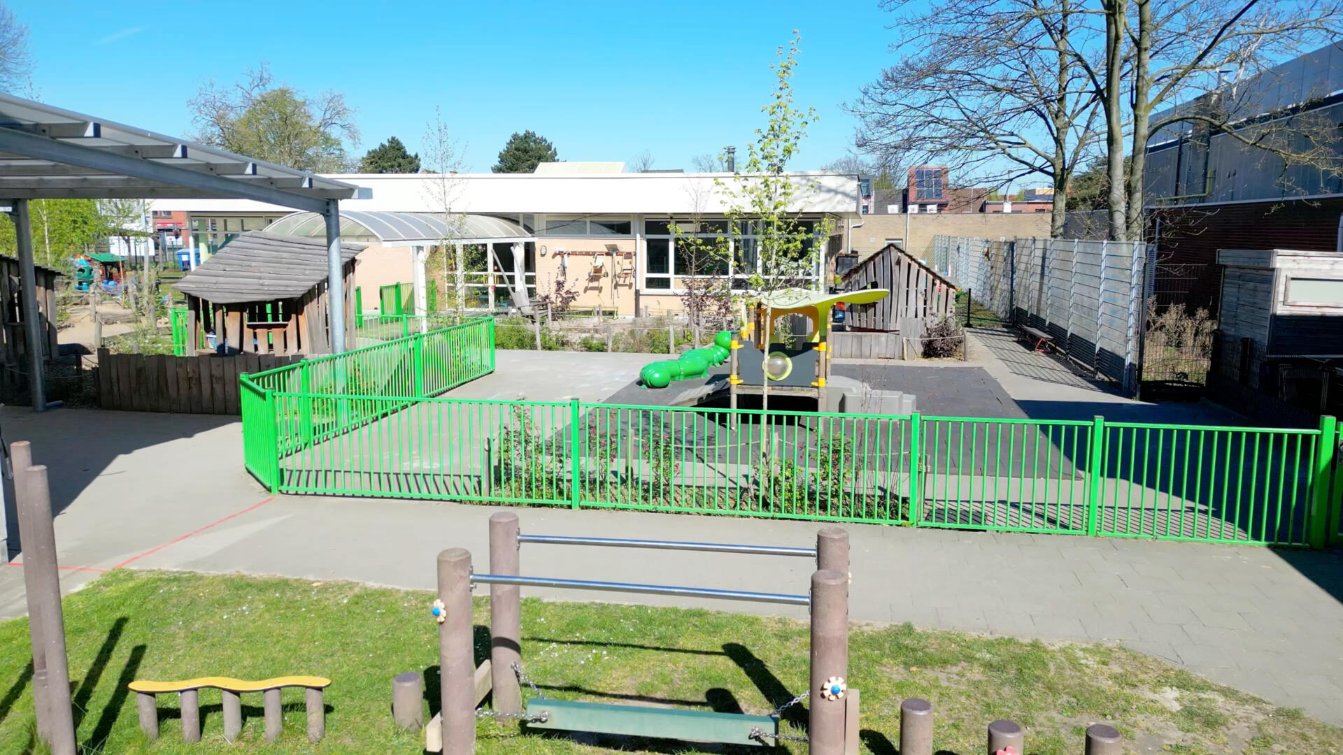 Wanneer het lente wordt, zullen ook de planten, struiken en bomen die gepland zijn, de speelplaats van extra groen voorzien.