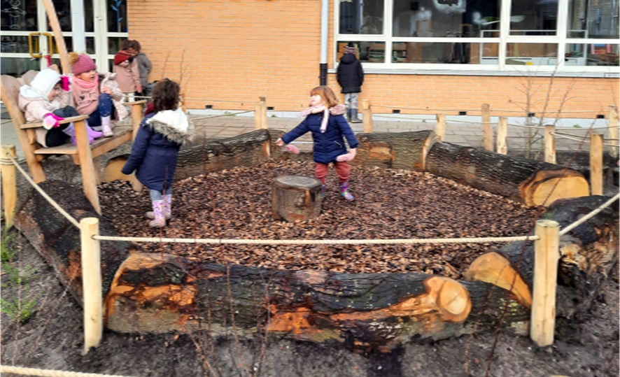 Wanneer het lente wordt, zullen ook de planten, struiken en bomen die gepland zijn, de speelplaats van extra groen voorzien.